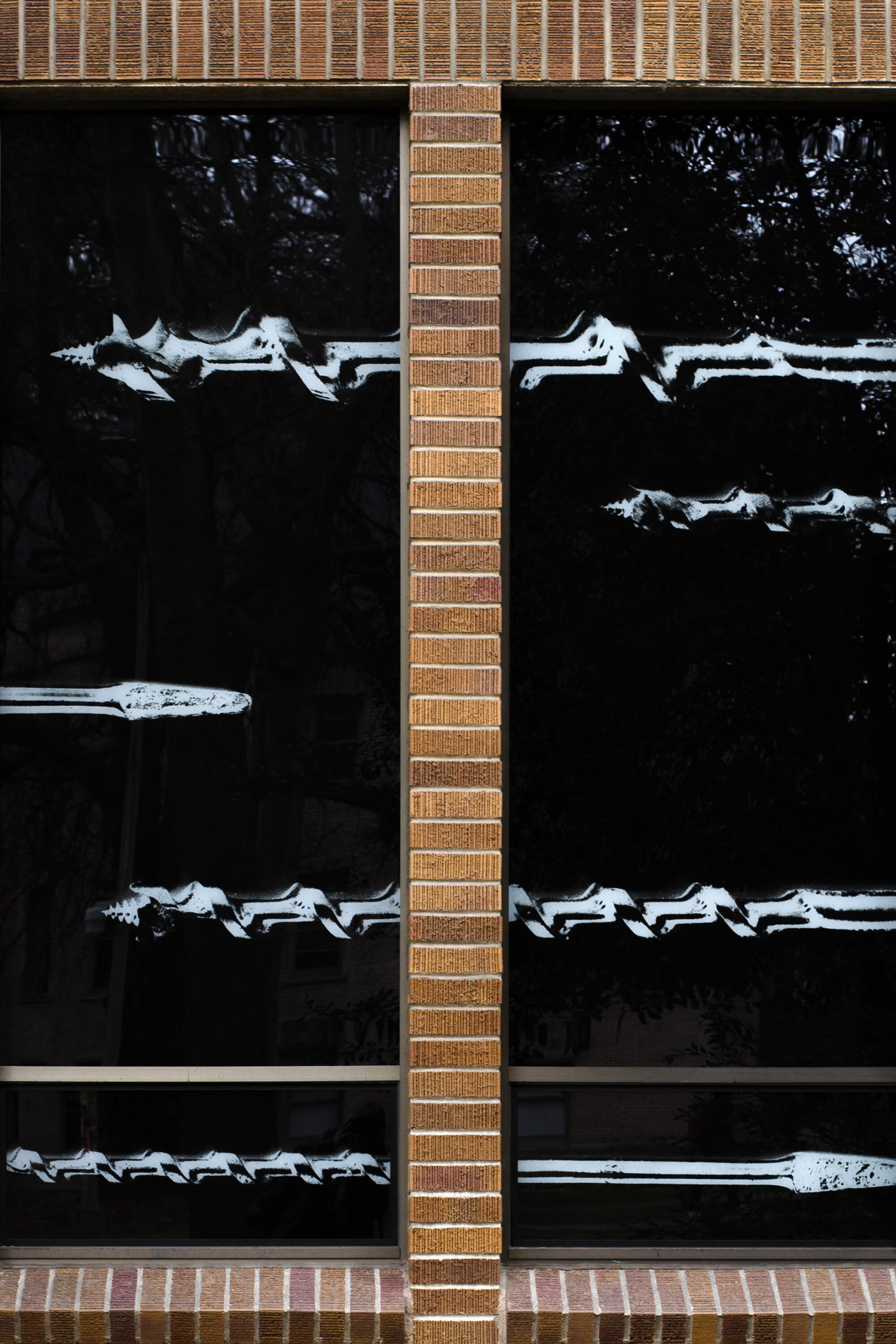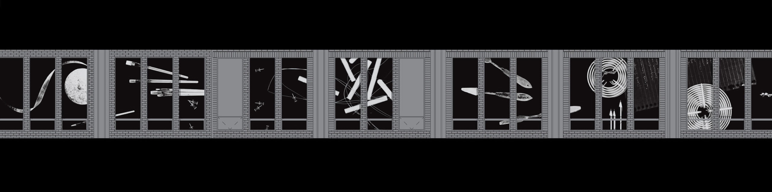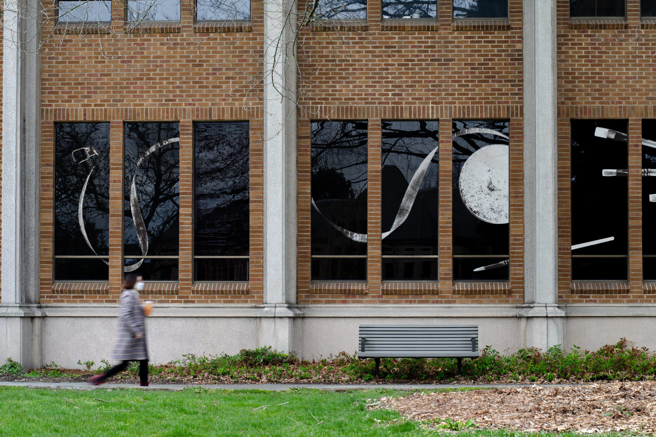 The final window graphics combine photographs of Jacob Lawrence’s personal tools with that of tools currently found in workshops and classrooms in the building. These objects appear at larger-than life scale, demanding the attention of passerby and preserving Jacob Lawrence’s legacy in the UW School of Art.